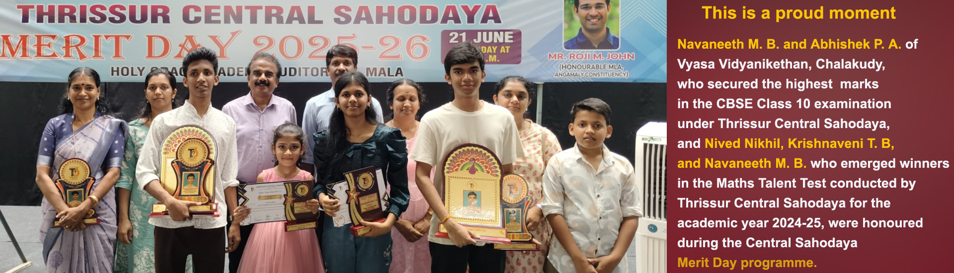 Vyasa Vidyanikethan Central School (Senior Secondary) Chalakudy, Thrissur District, Kerala State, established in 1995, the first project of Jagadguru Educational Cultural and Charitable Trust, Chalakudy which was sponsored by dedicated and patriotic personnel in and around Chalakudy. It is accepted world wide that ultimate end of education should be a noble character and end of knowledge is inclusion of anything and everything.