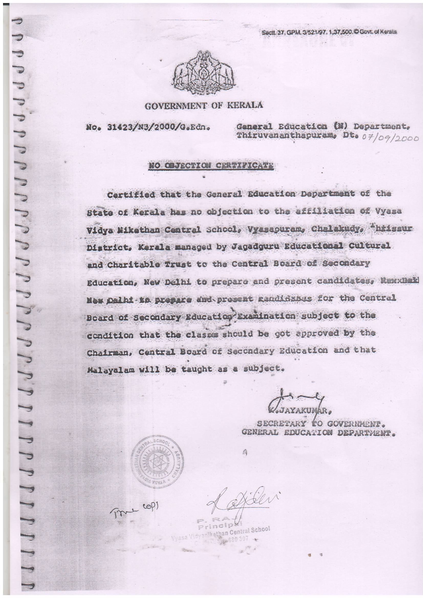 B-7 SELF CERTIFICATE
